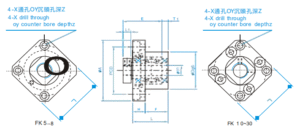 FK (Front Fixed Side) and BK (Back Fixed Side) are commonly used end caps for linear bearings.