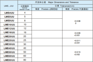 The LME…UU Linear Bearing Series is the inch-dimension version of the standard linear ball bearing, designed for use with inch-sized linear shafts. These bearings provide smooth, low-friction, and accurate linear motion, making them widely used in automation equipment, CNC systems, precision stages, 3D printers, packaging machines, and more.