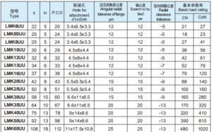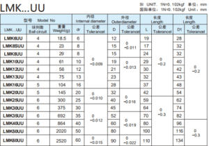 LMK6UU, LMK8UU, LMK10UU,LMK12UU, LMK13UU, LMK16UU,LMK20UU, LMK25UU, LMK30UU,LMK35UU, LMK40UU, LMK50UU,LMK60UU
